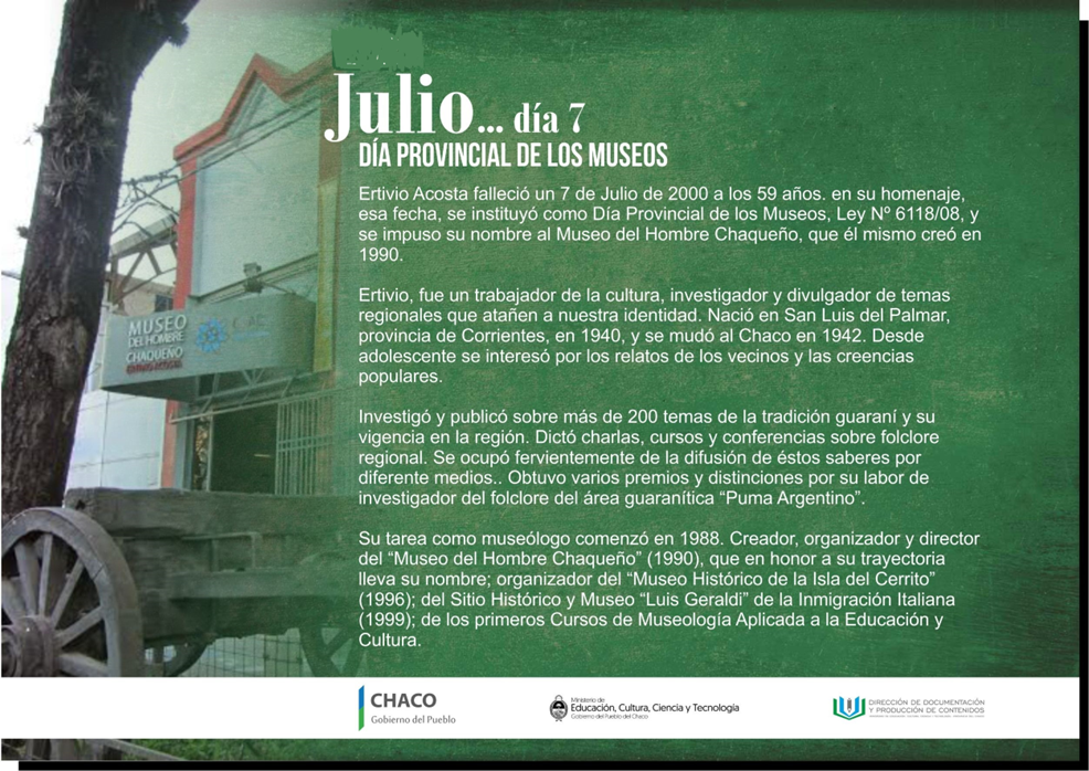 El Pombero Ertivio, fue un incansable trabajador de la cultura, investigador y divulgador de temas regionales que atañen a nuestra identidad.