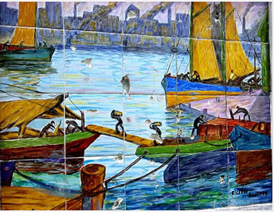 Sus obras privilegian temas del barrio de la Boca y Riachuelo.