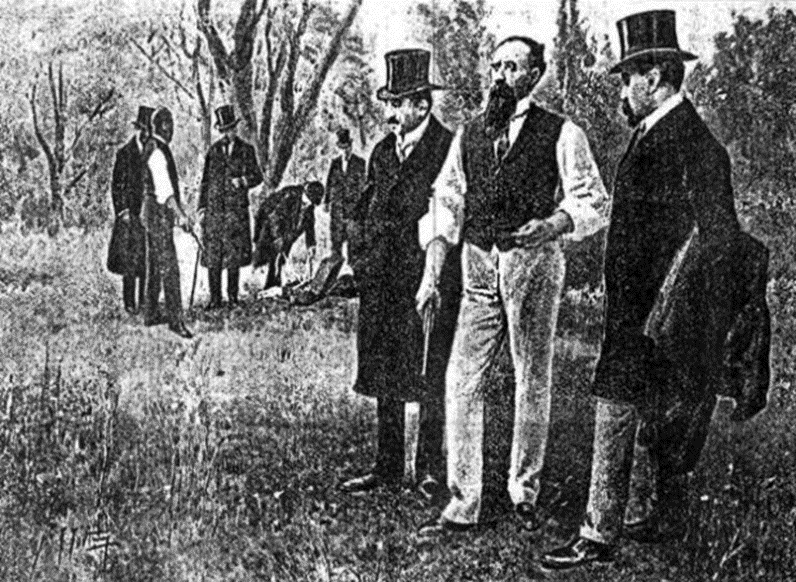 A los duelos escritos les sucedió el duelo en el campo del honor. Los hombres se encontraron en la quinta del escribano Tulio Méndez el sábado 7 de febrero de 1880. Los padrinos de Mansilla fueron los coroneles Uriburu y Godoy, y los de Gómez, los coroneles Meyer y Lagos. El día era caluroso y el cielo estaba despejado.