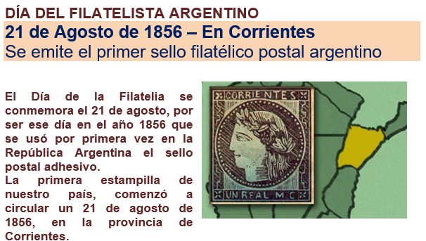 En homenaje a la impresión de este primer sello, en el año 1953, el primer Congreso Argentino de Filatelia, instituyó el 21 de agosto como Día del Filatelista Argentino.