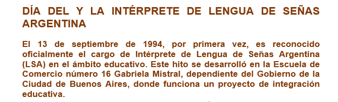 En este mismo mes, la comunidad Sorda conmemora también a Rodolfo Molinero, quien se desempeñó como intérprete comunitario en distintas asociaciones de Sordos, con una marcada vocación de servicio hasta su fallecimiento, el 27 de septiembre 1975.