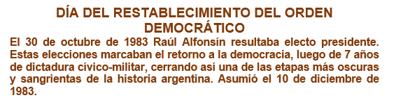 El doctor Raúl Alfonsín, candidato de la Unión Cívica Radical, gana las elecciones presidenciales. El 10 de diciembre Alfonsín asumiría el primer gobierno democrático tras más de siete años de gobiernos militares.