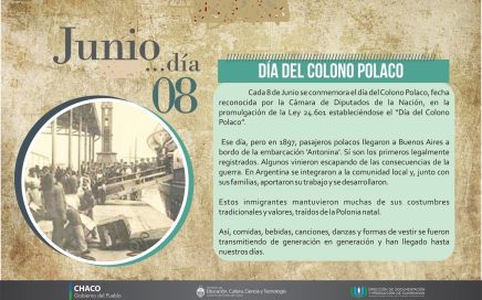 DÍA DEL COLONO POLACO En 1995, mediante la ley 24.601 se declaró el 8 de junio como el Día del Colono Polaco. Ese día, pero en 1897, pasajeros polacos llegaron a Buenos Aires a bordo de la embarcación ‘Antonina’. No […]